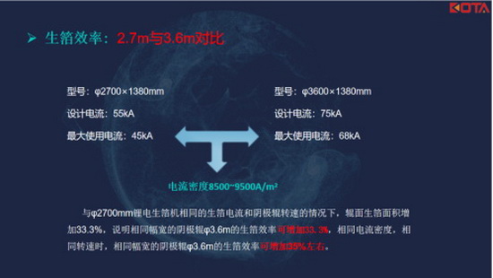 ตัวอย่างเช่นตั้งแต่ปี 2560 ถึงปี 2562 อุตสาหกรรมฟอยล์ทองแดงแบตเตอรี่ลิเธียมส่วนใหญ่ได้รับการเลื่อนตำแหน่งลูกกลิ้งแคโทดที่มีขนาดเส้นผ่าศูนย์กลาง 2.7 เมตรและอุตสาหกรรมกำลังพัฒนาลูกกลิ้งแคโทดที่มีขนาดเส้นผ่าศูนย์กลาง 3.6 เมตร ที่ความหนาแน่นกระแสเดียวกันและความเร็วเท่ากันประสิทธิภาพการผลิตฟอยล์ของลูกกลิ้งแคโทดที่มีเส้นผ่านศูนย์กลางของφ3.6mและความกว้างเดียวกันสามารถเพิ่มขึ้นได้ประมาณ 35% เมื่อเทียบกับลูกกลิ้งแคโทดที่มีเส้นผ่านศูนย์กลางφ2.7m