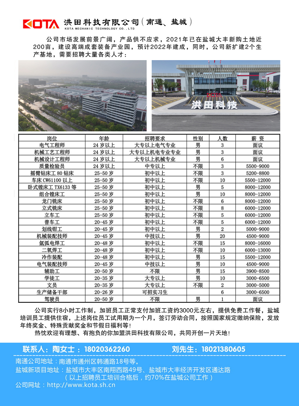 ที่อยู่โครงการใหม่ของ Yancheng: หมายเลข 49, Nanxiang West Road, Dafeng District, Yancheng City, Tongda Road, เขตพัฒนาเศรษฐกิจ Dafeng, เมือง Yancheng (หลังจากพนักงานที่ได้รับคัดเลือกข้างต้นมีคุณสมบัติในการฝึกอบรมประมาณ 70% จะทำงานใน บริษัท Yancheng)